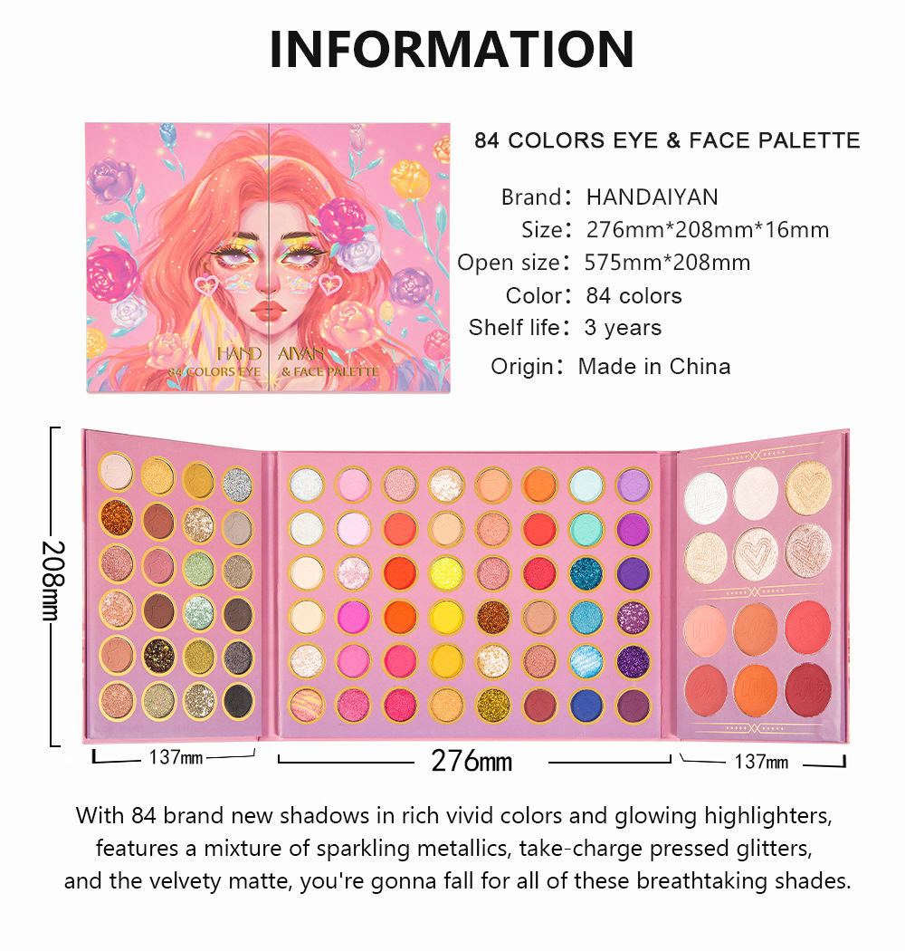 HANDAIYAN 84 Color Makeup Palette Eye Shadow + Blush + Highlight Eye Shadow Set Set Box Pearl Matte Eye Shadow