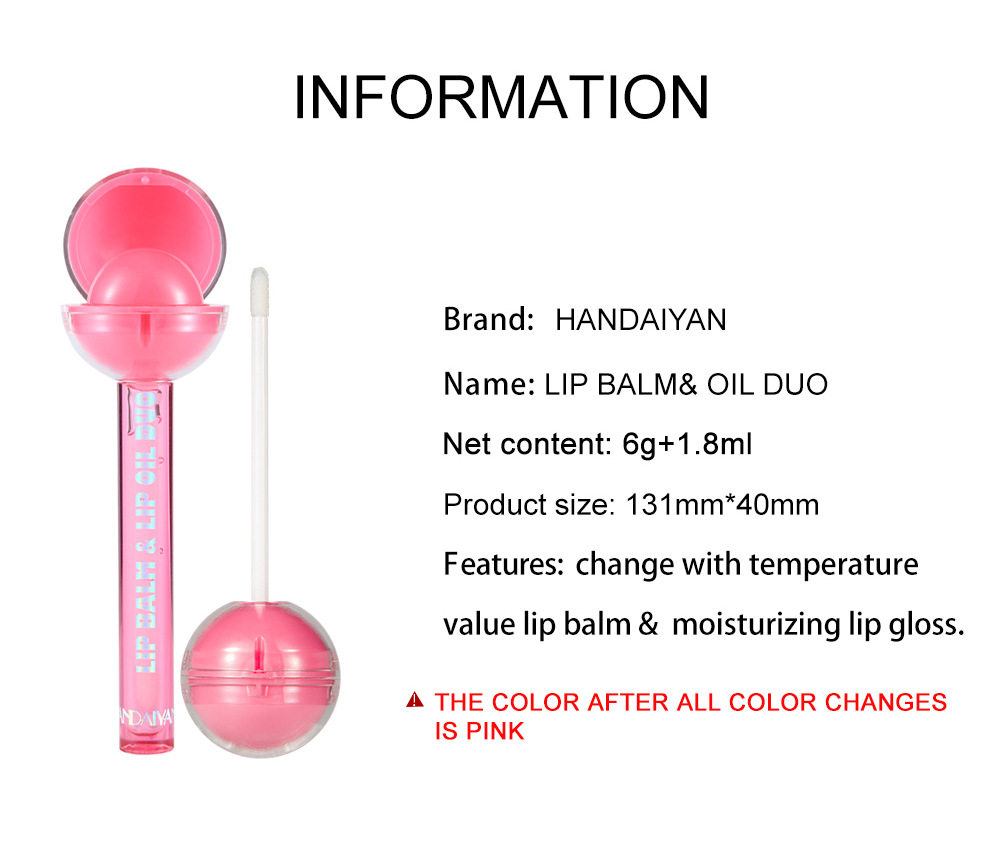 HANDAIYAN Dual-Use Lollipop Color-Changing Lip Balm Lipstick Moisturizing Lip Oil Lip Gloss