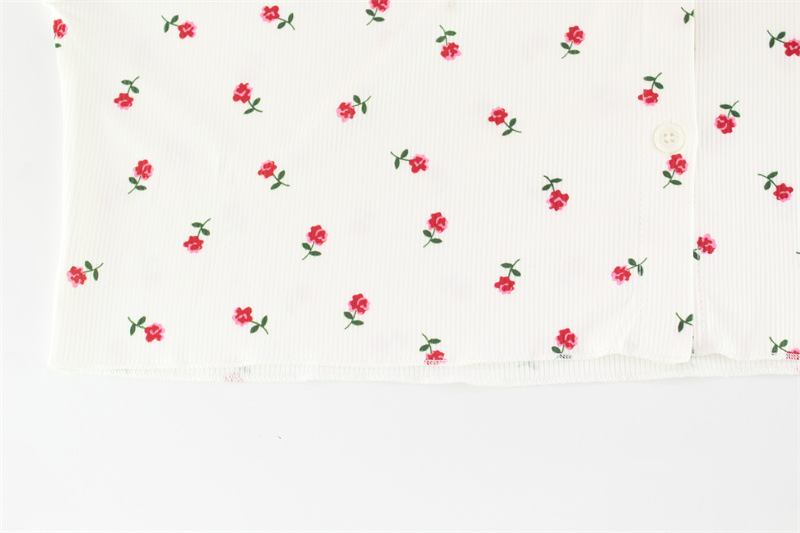 Printed round neck long sleeved cardigan with exposed waist top loose casual shorts set for women