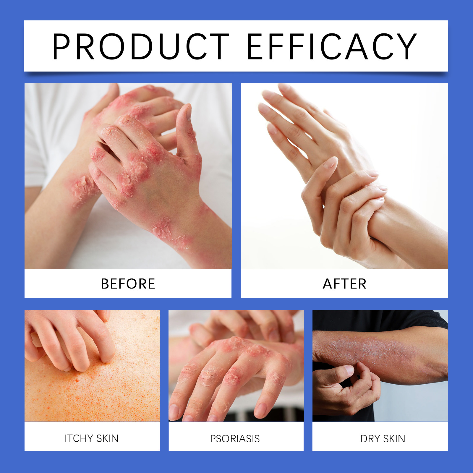 Our skin repair cream contains chamomile extract, lavender extract, shea butter. It can relieve psoriasis, eczema and other conditions, reducing redness and itching. The way to use it is simple: 1. Clean your skin and keep it dry. 2. Apply proper amount of cream evenly to the affected area and gently massage around to promote absorption. Reduce skin dryness and tightness, improve skin comfort. Light texture, skin can breathe freely after use.